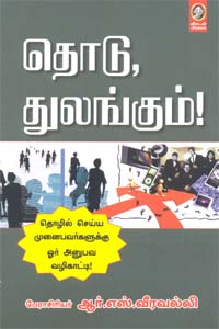 ‘‘ஆக, புதுசா ஒரு தொழில் ஆரம்பிக்க நெனச்சு இந்தப் புத்தகத்த வாங்கிட்டீங்க..!’’ ‘‘பின்னே... ஏற்கெனவே விவரம் தெரியாம ஒரு தொழில ஆரம்பிச்சு கைய சுட்டுக்கிட்டேன். இப்போ ‘தொடு, துலங்கும்!’னு இந்தத் தலைப்பைப் பார்த்ததுமே திரும்ப உற்சாகமாகி வாங்கிட்டேன்!’’ ‘‘நியாயமான உற்சாகம்தான்! படிச்சுப்பாருங்க... சுயதொழில் ஆரம்பிச்சு உங்க திறமைய வெளிப் படுத்தி, தொழில் போட்டியில நீங்க வெற்றிக் கொடிய பறக்க விடலாம்ங்கறதைப் புரிஞ்சுப்பீங்க! பண்டமாற்று முறையில் துவங்கி பங்குச் சந்தை வரை தொழில் வளர்ச்சியோட பரிணாமங்களையும், அடிப்படைக் காரணங்களையும் சுயதொழில் செய்ய தூண்டும் விதமா, தெளிவா எழுதியிருக்காரு பேராசிரியர் ஆர்.எஸ்.வீரவல்லி.’’ ‘‘என்ன தொழில் செய்தா நிறைய லாபம் கிடைக்கும்னு யோசிக்கிறேன். அதுக்குத் தகுந்த மாதிரியான வேலை ஆட்களைத் தேர்ந்தெடுக்க இந்தப் புத்தகத்துல வழி சொல்லியிருக்காரா?’’ ‘‘புதுசா தொழில் துவங்க நெனக்கிறவங்கள மனசுல வெச்சுத்தான் பல அடிப்படையான விஷயங்களையும் எழுதியிருக்காரு. எப்படிப்பட்ட திறமை உள்ளவங்கள வேலைக்கு எடுக்கணும், எப்படிப்பட்ட திட்டங்கள வகுக்கணும், மார்க்கெட்டிங் சர்வே எப்படிப் பண்ணனும் என்பதைப் பற்றியும்.